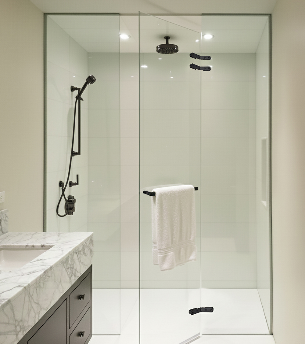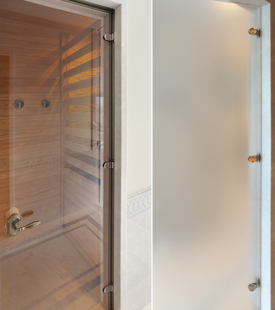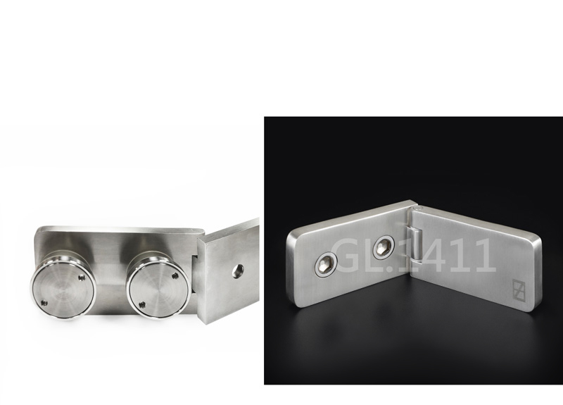 師傅手拋毛絲表面無電鍍,正面、反面一樣美觀。玻對玻鉸鏈同時提供不鏽鋼原色/鈦黑色。