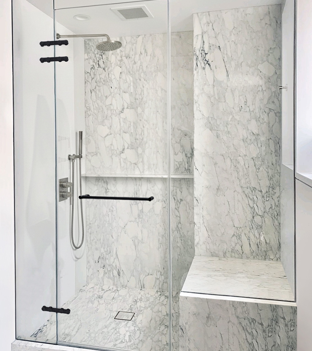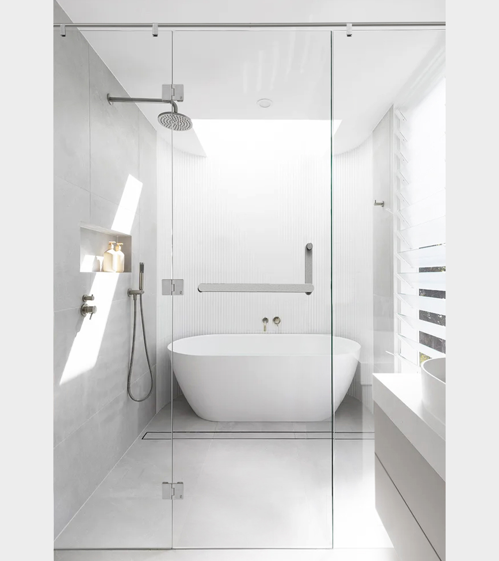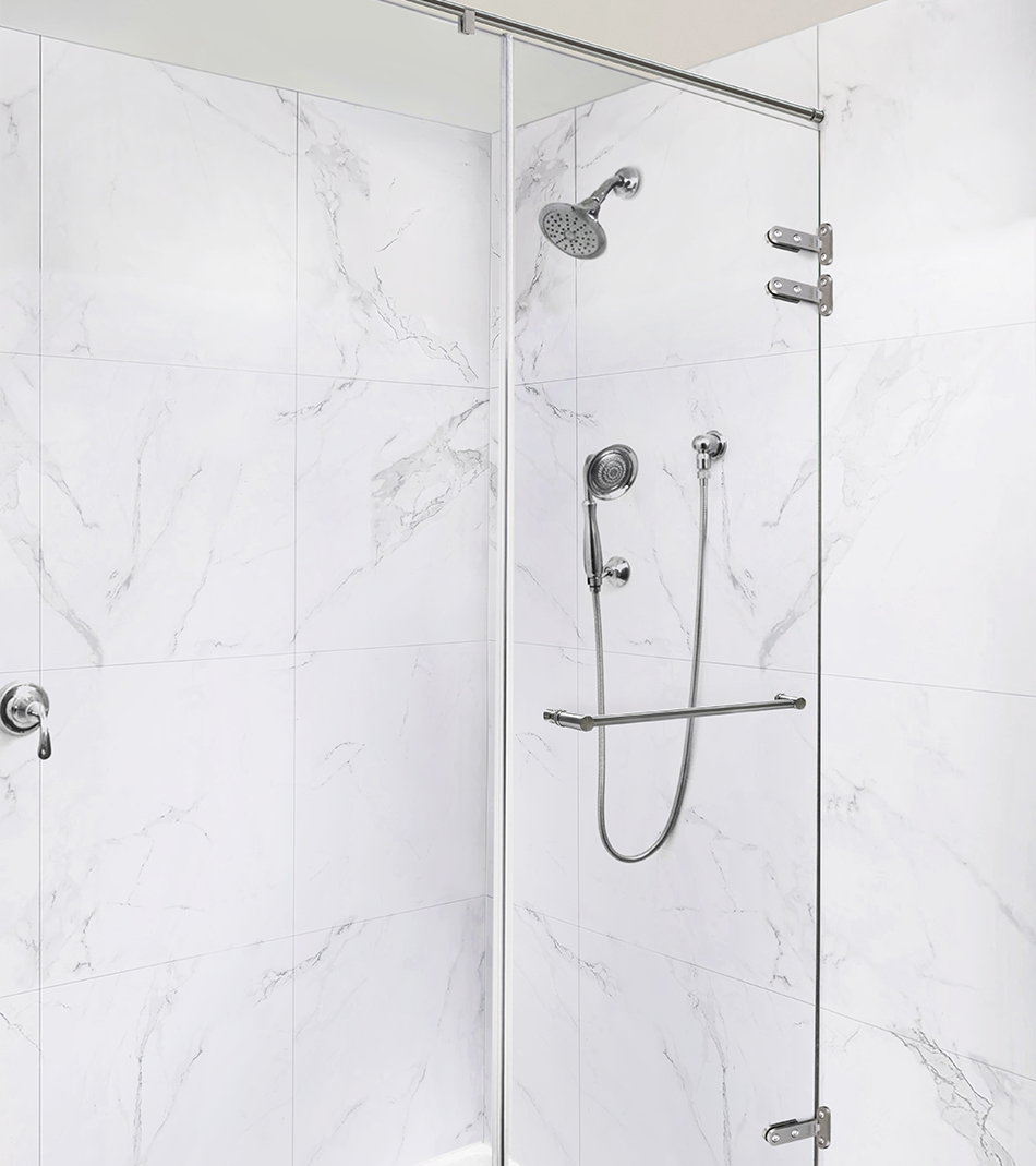 Penna 運用在全玻璃規劃設計的淋浴間更顯簡潔而優雅。並且,純鋼材拉絲處理的本體,使清潔工作更為輕鬆。